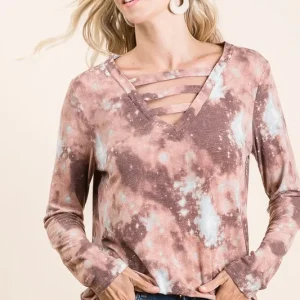 Tie Dye French Terry V-Neck Top – Rustic Mocha