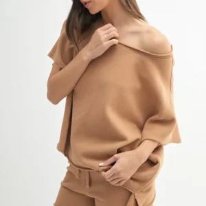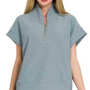 French Terry Round Neck Cap Sleeve T-Shirt – Blue Grey
