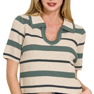 Striped Collared Short Sleeve Cropped Sweater – Ash Jade