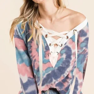 Tie Dye Deep V-Neck Top with Lace Up Front – Tie Dye
