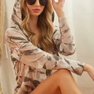 Tie Dye Brushed Terry Hoodie with Zip Up Closure – Ivory/Black
