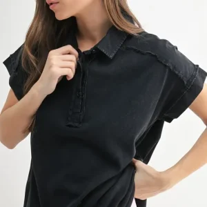 Mineral Wash Half Button T-Shirt – Black
