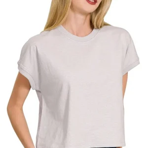 Premium Cotton Relaxed Crop Tee – H Grey
