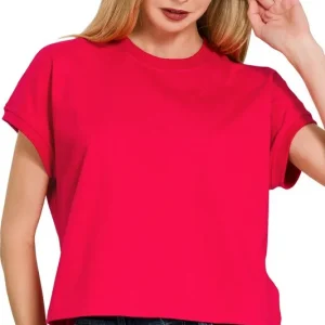 Premium Cotton Relaxed Crop Tee – Ruby