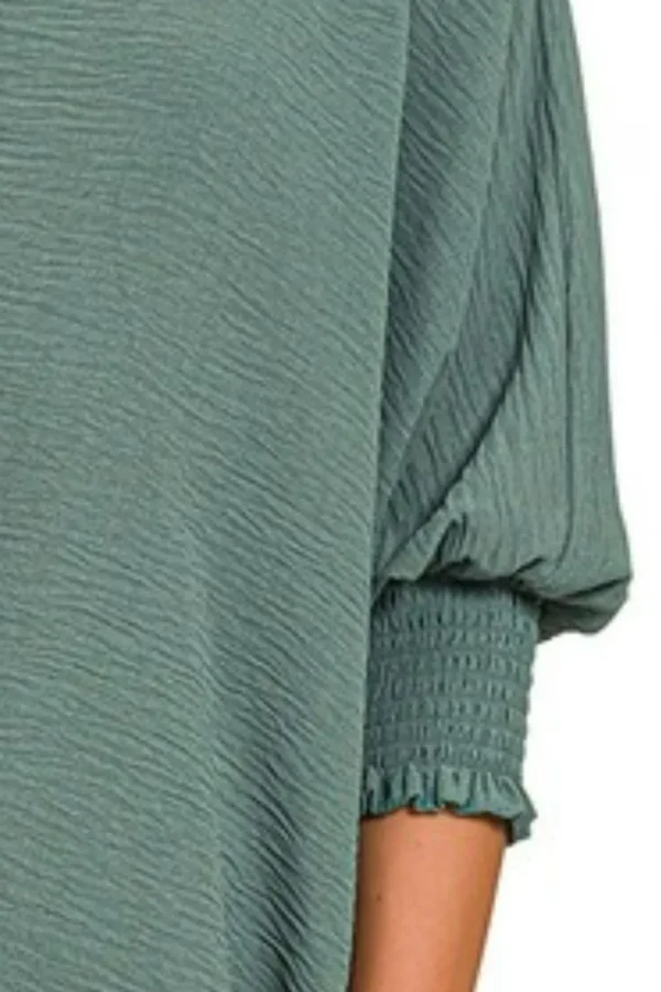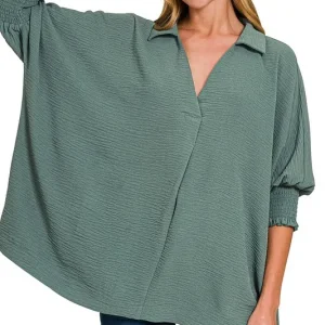 Airflow Collar Tee with Smocked Sleeve Band Top – Ash Jade