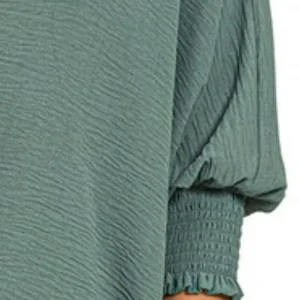 The Airflow Collar Tee with Smocked Sleeve Band Top is a stylish and versatile piece that combines comfort with feminine details. The airflow collar adds a chic touch to the tee, creating a sophisticated look. The smocked sleeve band detail adds a trendy and unique element to the top, providing a touch of elegance. This top is perfect for a casual yet polished outfit, whether paired with jeans for a relaxed look or styled with trousers for a more put-together ensemble. Stay comfortable and fashionable with the Airflow Collar Tee with Smocked Sleeve Band Top for a versatile and stylish addition to your wardrobe.