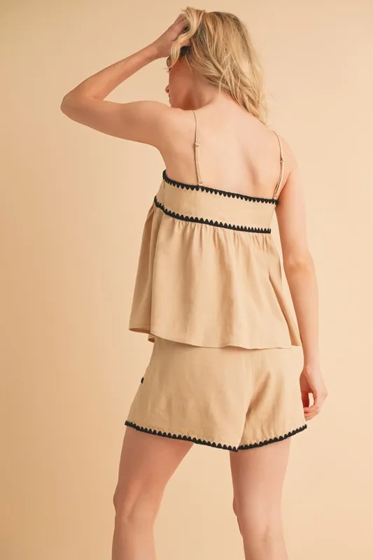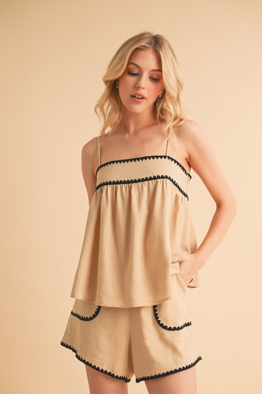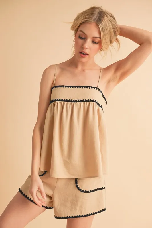 The Bali rickrack trim top is a stylish and bohemian-inspired piece that adds a touch of flair to your outfit. The rickrack trim detailing gives the top a unique and playful look, while the overall design is perfect for creating a relaxed and laid-back vibe. This top is versatile and can be dressed up or down for a casual day out or a beachy vacation look.