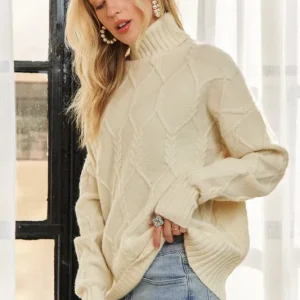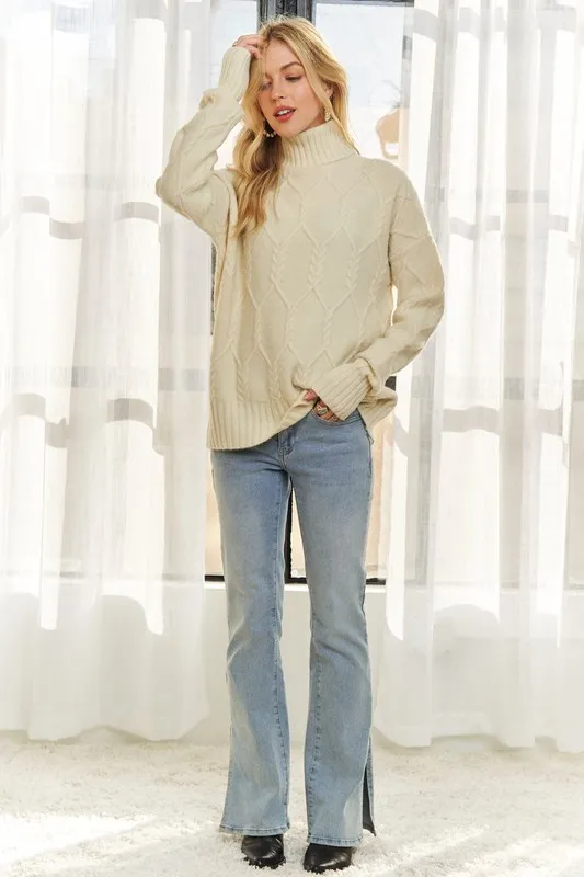 Braid Diamond Pattern Sweater – Beige
