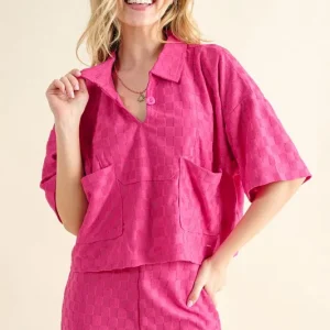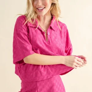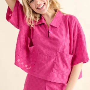 Brushed Texture Checker Board Pattern Casual Top – Fuchsia