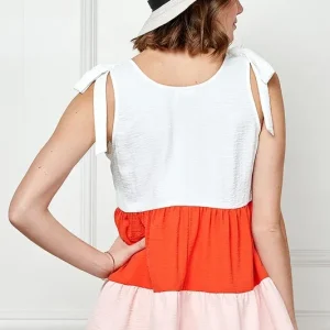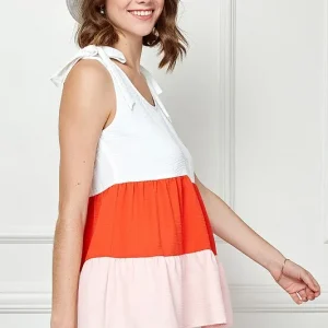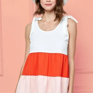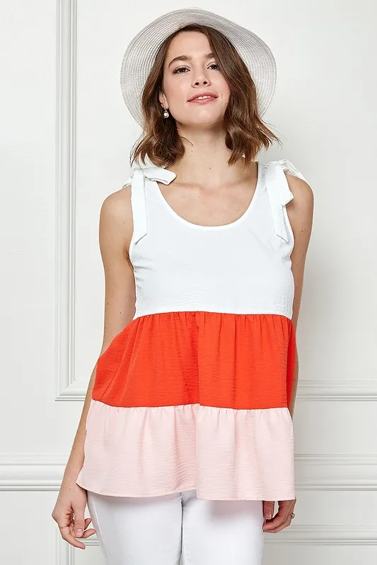 Color Block Sleeveless Tie Shoulder Babydoll Top – Coral Combo