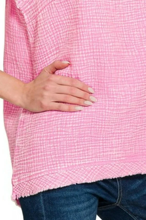 Double Gauze Raw Edge Acid Washed Tank – Candy Pink