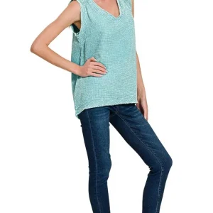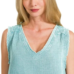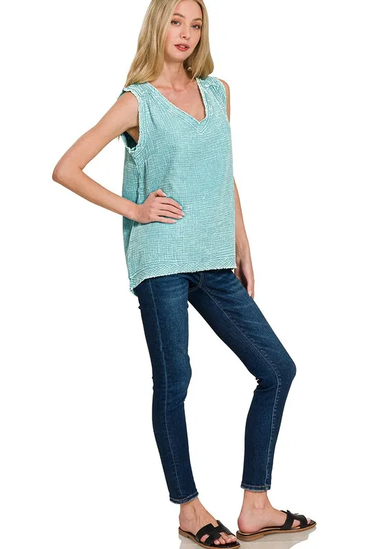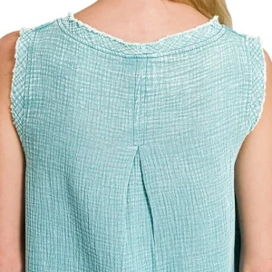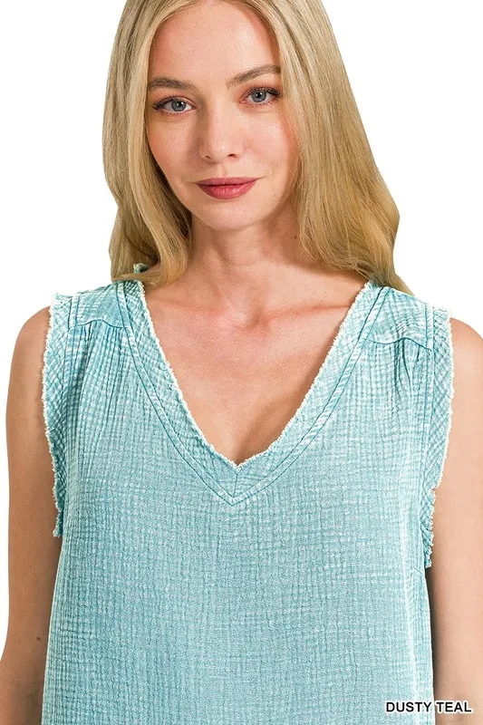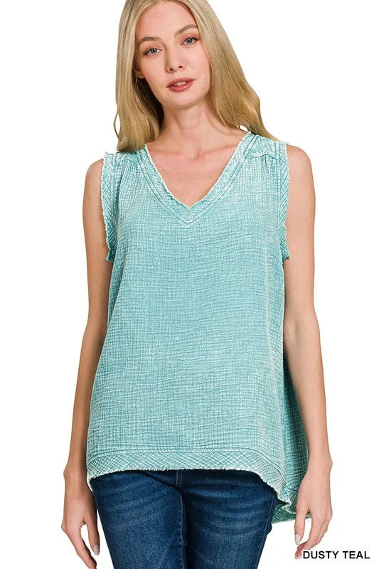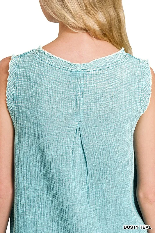 Double Gauze Raw Edge Acid Washed Tank – Dusty Teal
