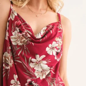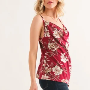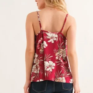 Floral Printed Casual Tank Top – Burgundy