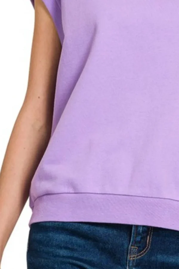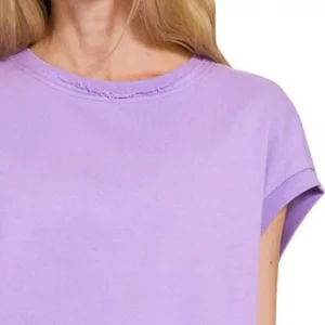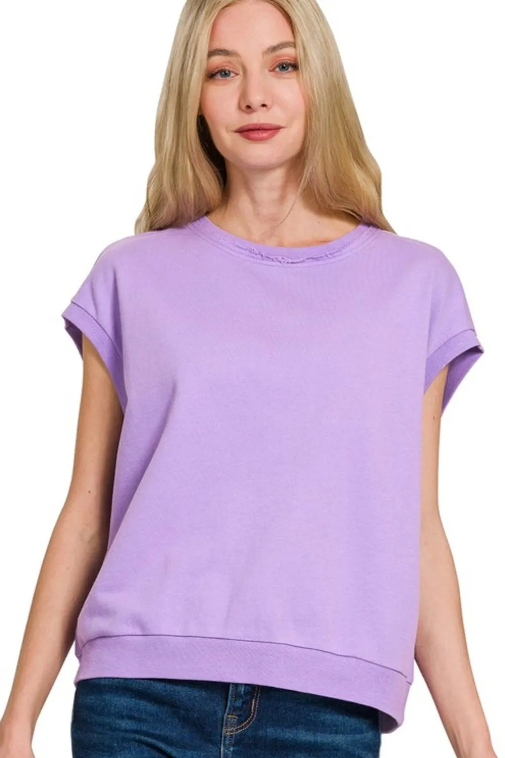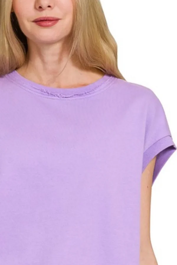 French Terry Round Neck Cap Sleeve T-Shirt – Lavender