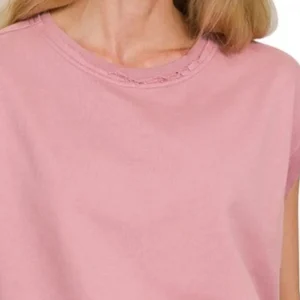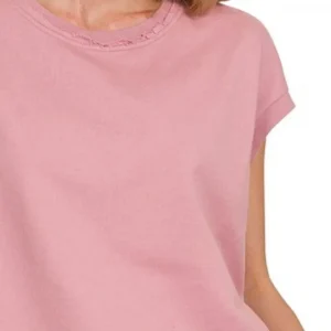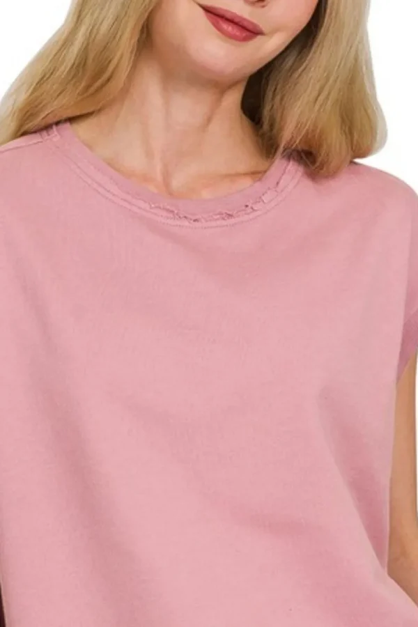 French Terry Round Neck Cap Sleeve T-Shirt – Lt Rose