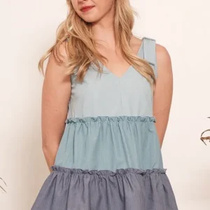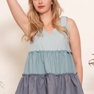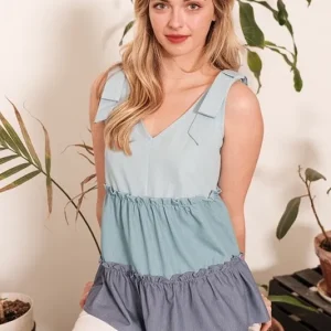 Full Size Color Block V-Neck Baby Doll Sleeveless Top Plus Size – Denim Combo