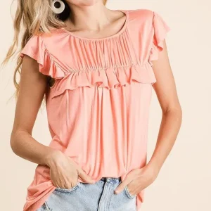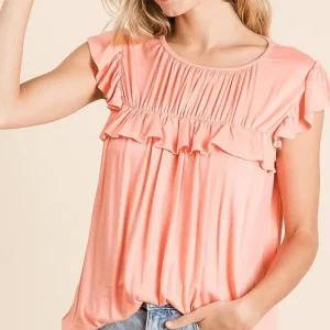 The Jersey Knit Gathered Top with Ruffles is a feminine and stylish piece that combines comfort with a touch of elegance. The jersey knit fabric offers a soft and stretchy feel, making it comfortable for all-day wear. The gathered detailing adds texture and visual interest to the top, creating a flattering silhouette. The ruffles accentuate the neckline or sleeves, adding a playful and romantic touch to the design. This top can be dressed up with a skirt or dress pants for a polished look, or paired with jeans for a more casual vibe. The combination of jersey knit fabric, gathered detailing, and ruffles makes this top a versatile and chic addition to your wardrobe.