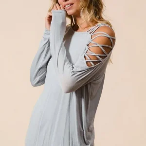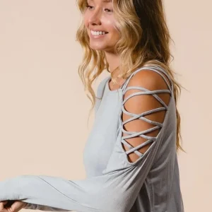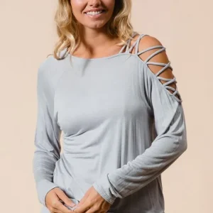 Jersey Knit One Shoulder Top with Criss Cross – Heather Grey
