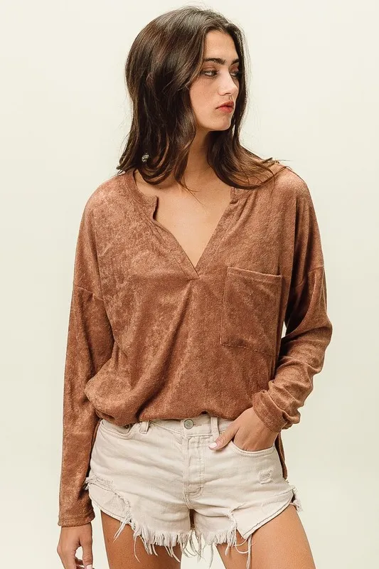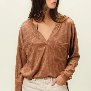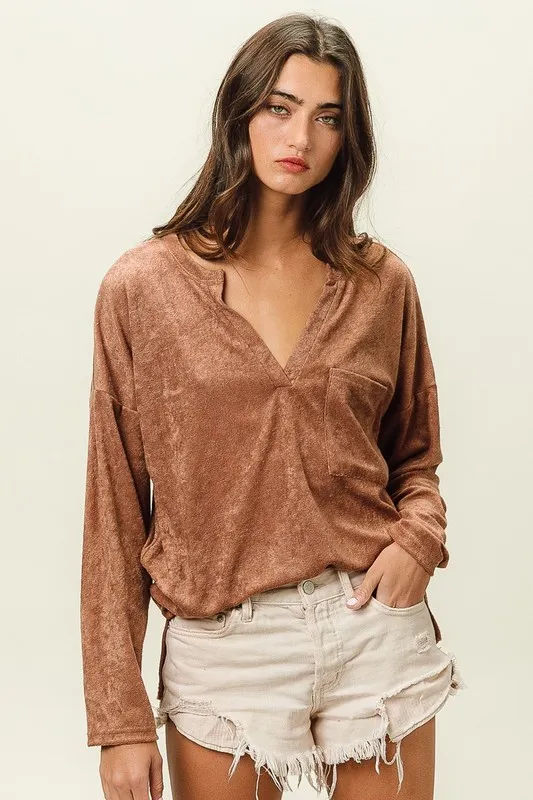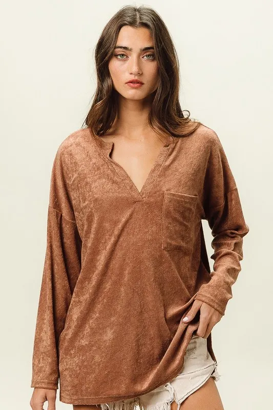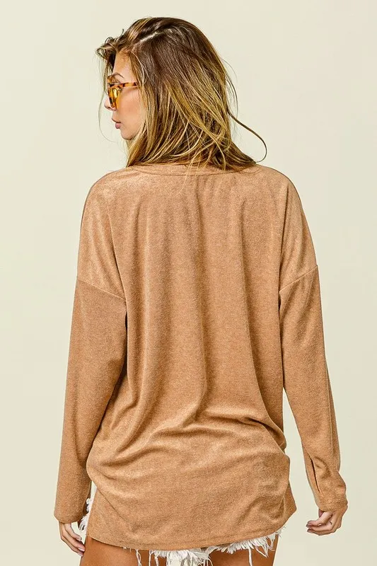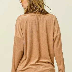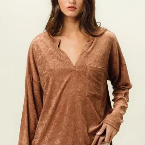 Loop Terry Solid V Neck Pocket Top – Camel