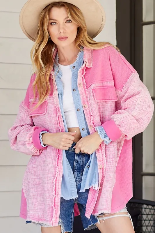 Oversized Mineral Wash Cotton Gauze Shacket – Pink