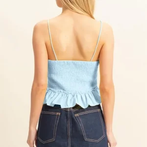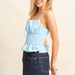Poplin Smocked Waist Summery Cami Top – L.Blue