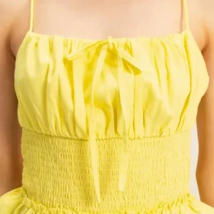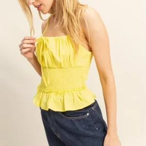 Poplin Smocked Waist Summery Cami Top – Yellow