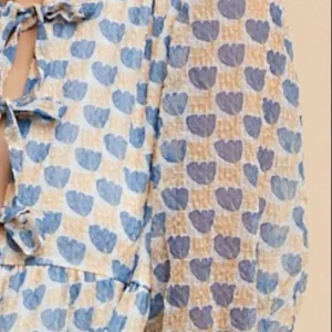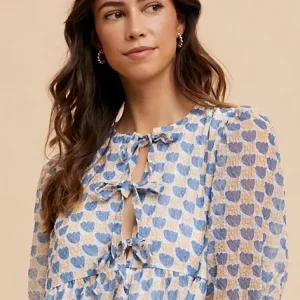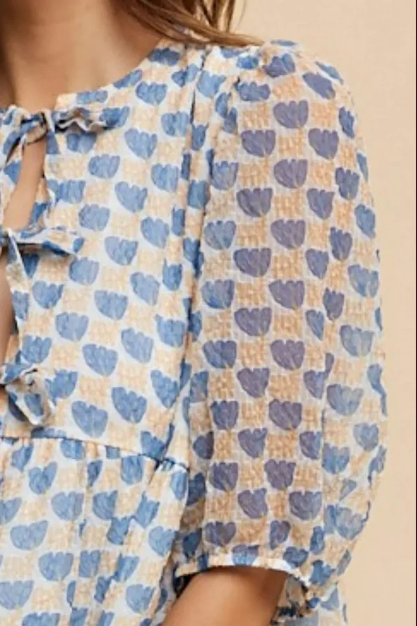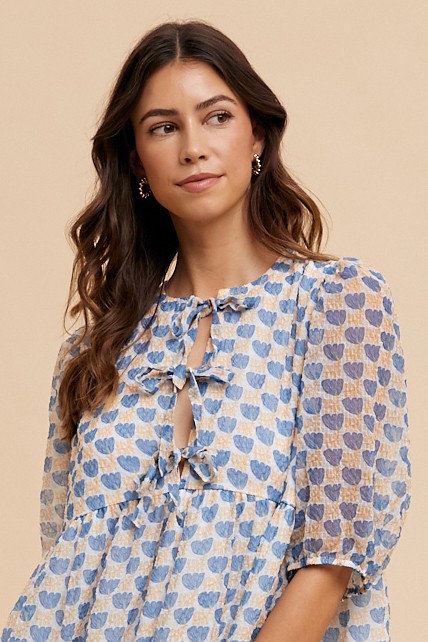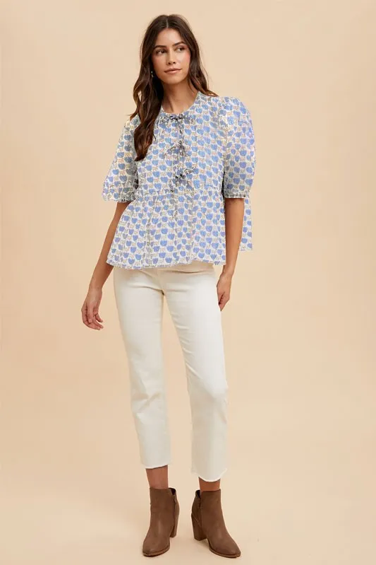 Printed Front Tie Closure Babydoll Blouse – Royal