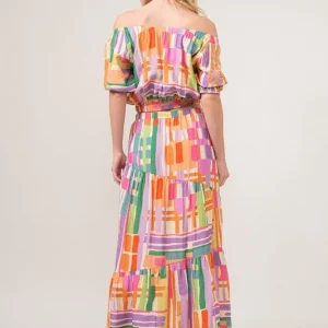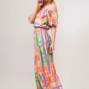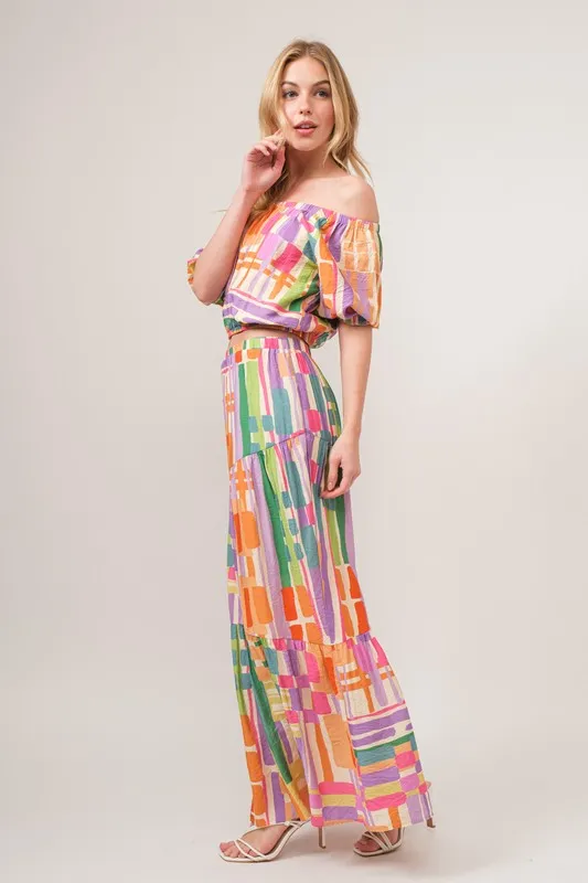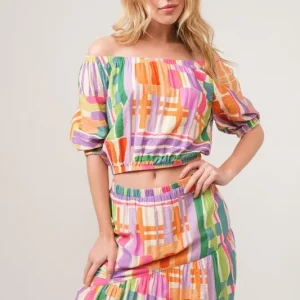 Puff Sleeve Elastic Edges Geo Printed Crop Top – Multi