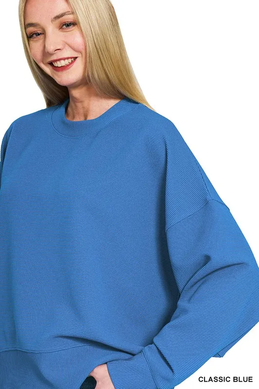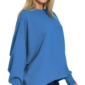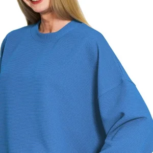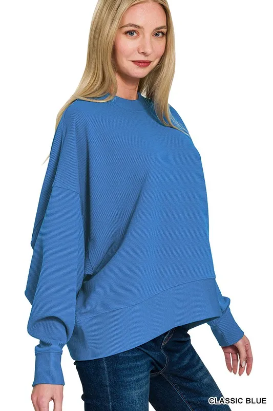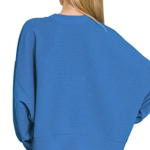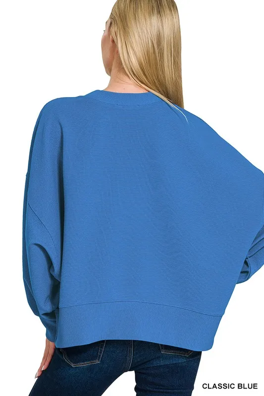 Ribbed Balloon Sleeve Sweatshirt – Classic Blue