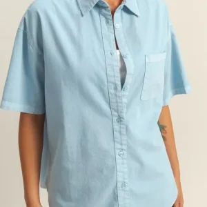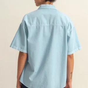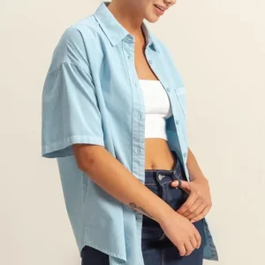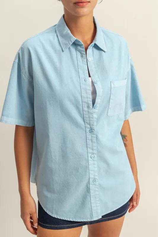 Short Sleeve Button Down Oversized Shirt – Baby Blue