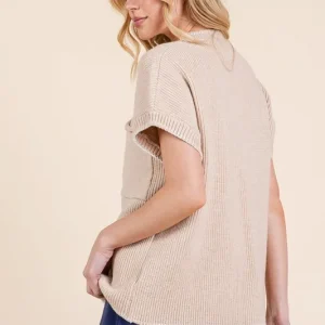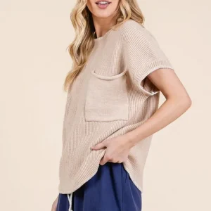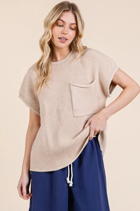 Solid Cap Sleeve Stitch Edge Knit Sweater – Taupe