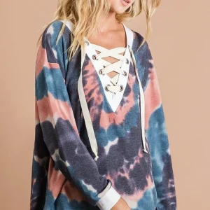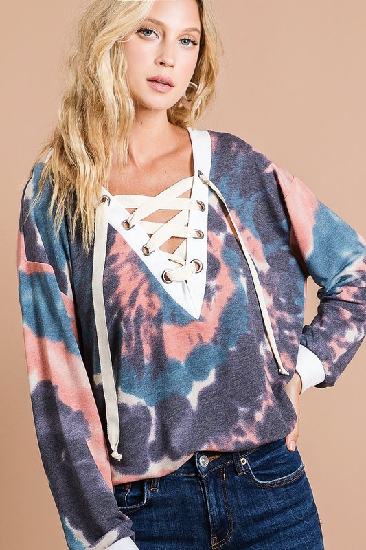 Tie Dye Deep V-Neck Top with Lace Up Front – Tie Dye
