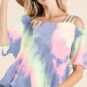 The Tie Dye French Terry Strapped One Shoulder Top is a chic and eye-catching piece for your wardrobe. The tie-dye print adds a playful and colorful flair to the French terry fabric. The one-shoulder design is stylish and on-trend, perfect for showing off some skin in a sophisticated way. The strapped detail adds an edgy and fashionable touch to the top. Ideal for a night out or a special occasion, this top can be paired with high-waisted pants or skirts for a statement-making look.