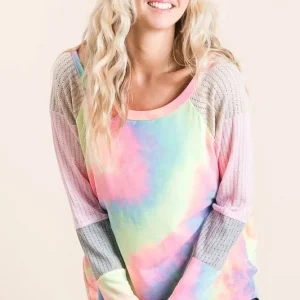 Tie Dye Terry Top with Color Block Pointelle Knit – Pastel Tie Dye