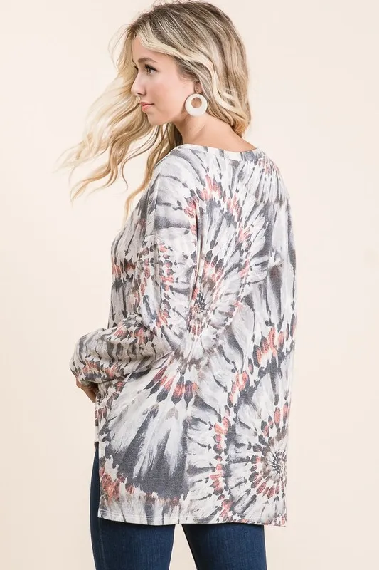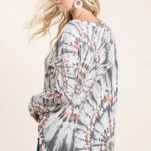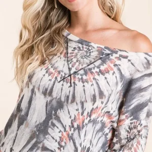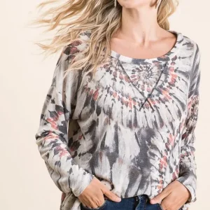 Tie Dye Terry Top with Contrast Stitching – Charcoal Grey