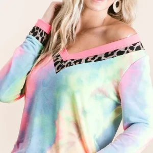 Tie Dye Terry V-Neck Top – Pastel Tie Dye