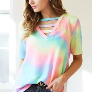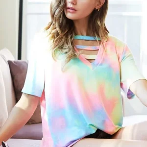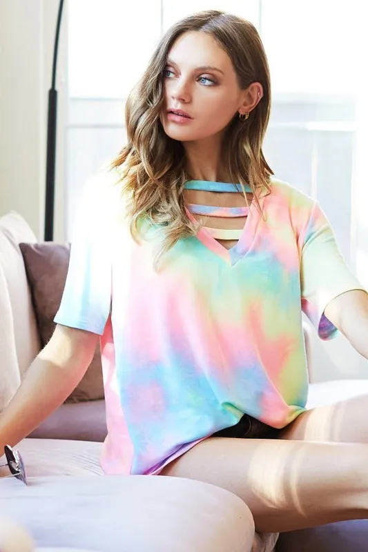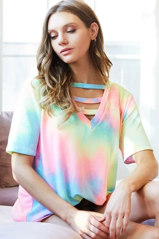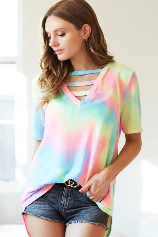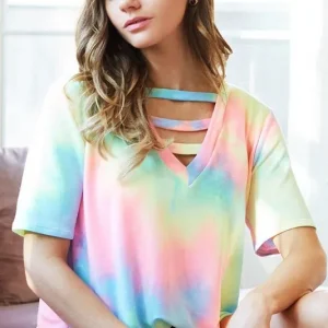 Tie-Dye V-Neck Short Sleeve T-Shirt – Pastel Tiedye