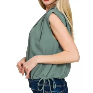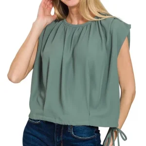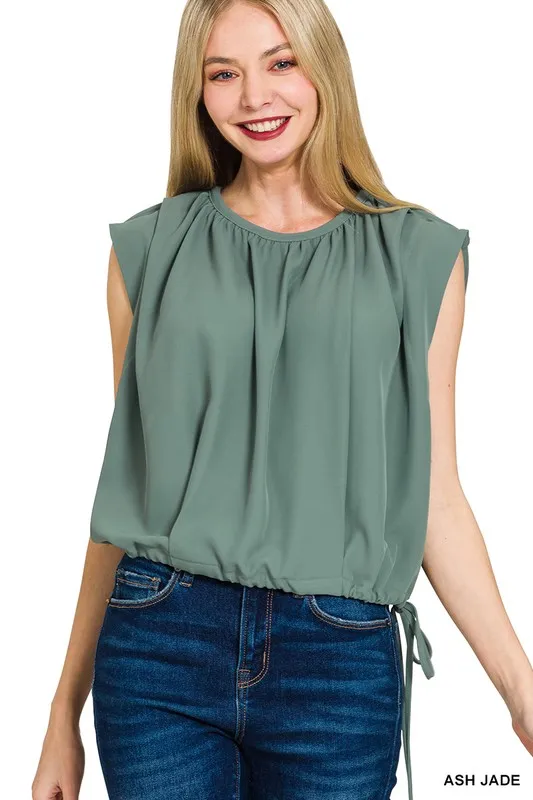 Woven Drawstring Tie Side Sleeveless Top – Ash Jade