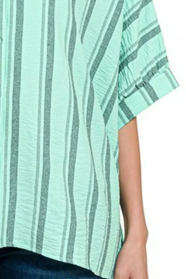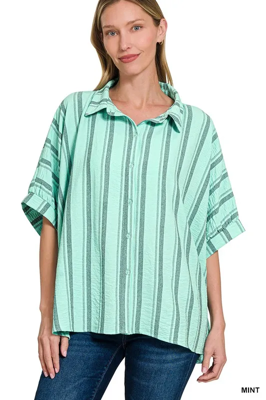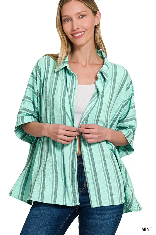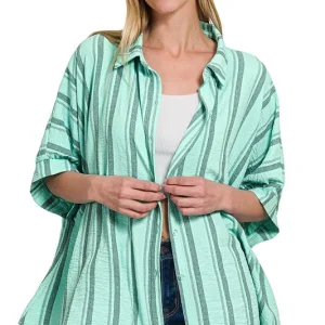 Woven Yarn-Dye Stripe Oversized Button Down Shirt – Mint