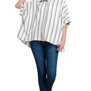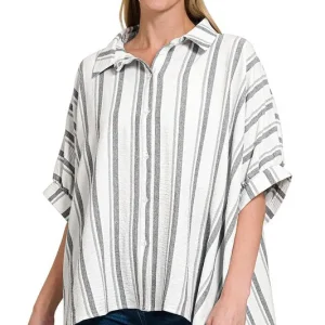 Woven Yarn-Dye Stripe Oversized Button Down Shirt – White/Black