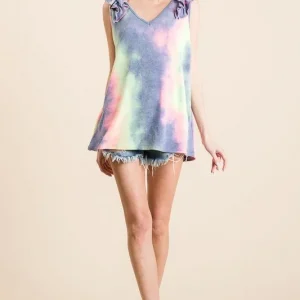 Tie Dye Deep V-Neck Top with Lace Up Front – Tie Dye