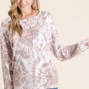 Tie Dye Print Terry Top with Front Patch Pocket – Mauve/Taupe