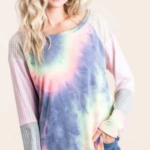 Tie Dye Terry Top with Color Block Pointelle Knit – Pastel Tie Dye