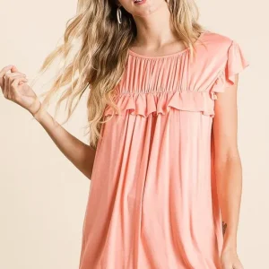 Jersey Knit Top with Tie Dye Laser Cut Sleeves – Blush