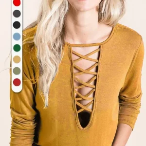 Jersey Knit Top with Criss Cross Caged Neck Detail – Mustard