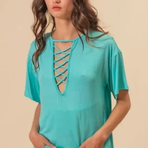 Jersey Knit Top with Criss Cross Front Neck Detail – Mint