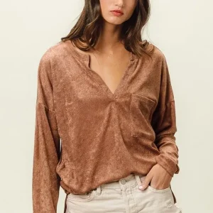 Jersey Knit Top with Camouflage Laser Cut Sleeves – Rust